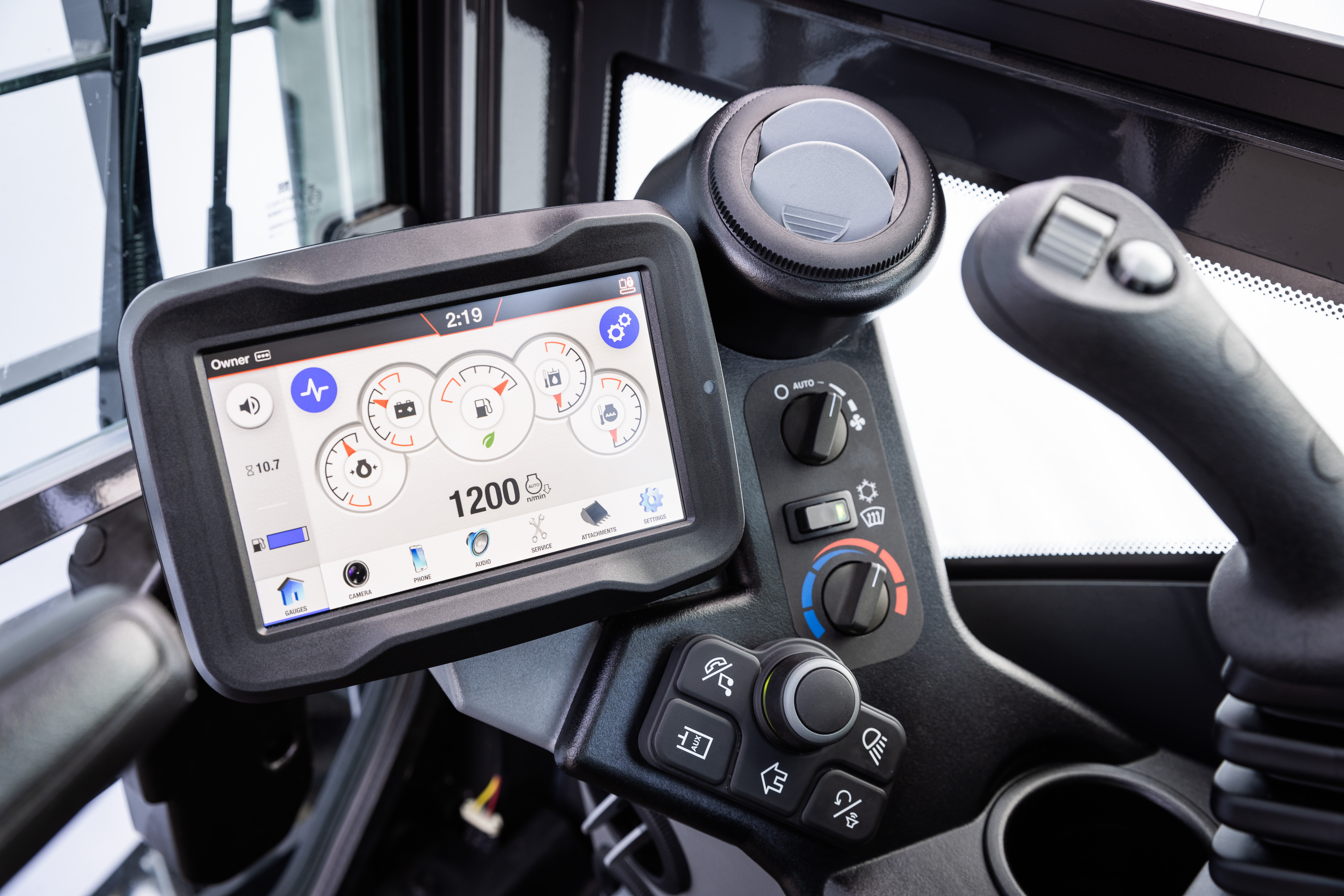 תא מפעיל סגור עם מיזוג אוויר עם חלונות צד, חלון אחורי , חלון קדמי ודלת כניסה שמאלית.